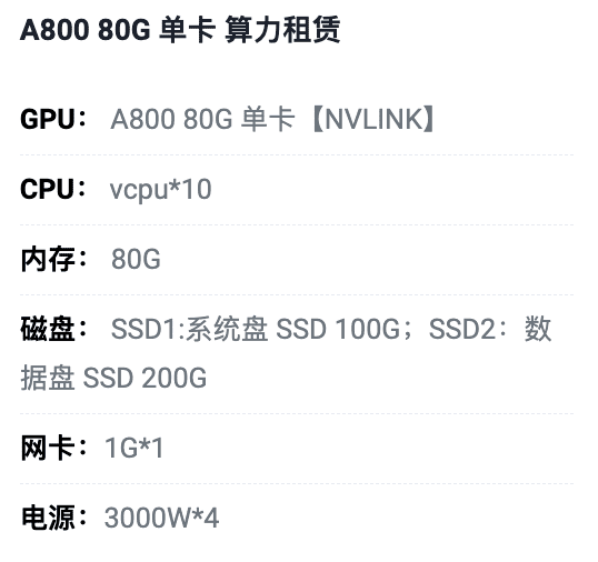 朝阳A800-80G单卡租用价格